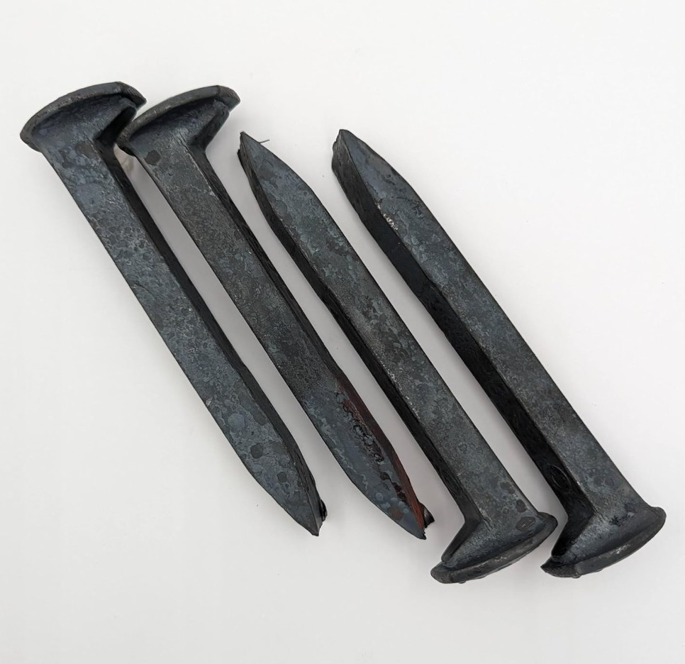 Use a wire brush to clean the spikes. Arrange them in a circular or rectangular base pattern.
