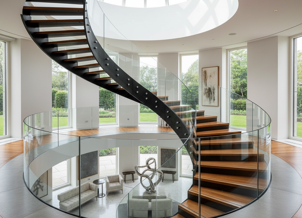 Curved glass railings follow the graceful flow of spiral or curved staircases elegantly. Custom bending techniques allow glass to match any architectural radius or shape. These railings become sculptural elements that draw the eye upward through spaces. According to experts, curved glass adds significant architectural interest to modern interiors.