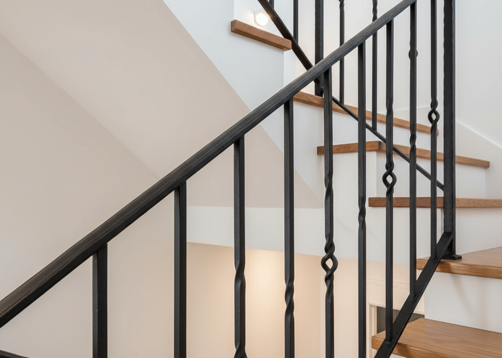 Custom forged iron railings blend traditional craftsmanship with contemporary simplicity and restraint. Subtle twist details add visual interest without overwhelming the modern aesthetic overall. Each piece is hand-forged by skilled artisans who respect both tradition and innovation. These railings bring warmth and character to modern interiors that sometimes feel cold. The minimal ornamentation keeps the look current while honoring metalworking heritage beautifully. These railings work wonderfully in transitional homes bridging old and new styles.